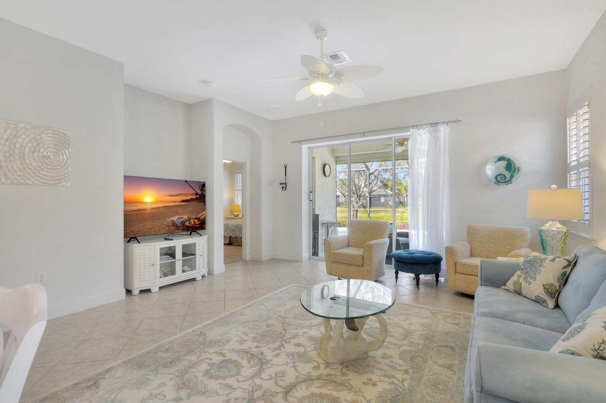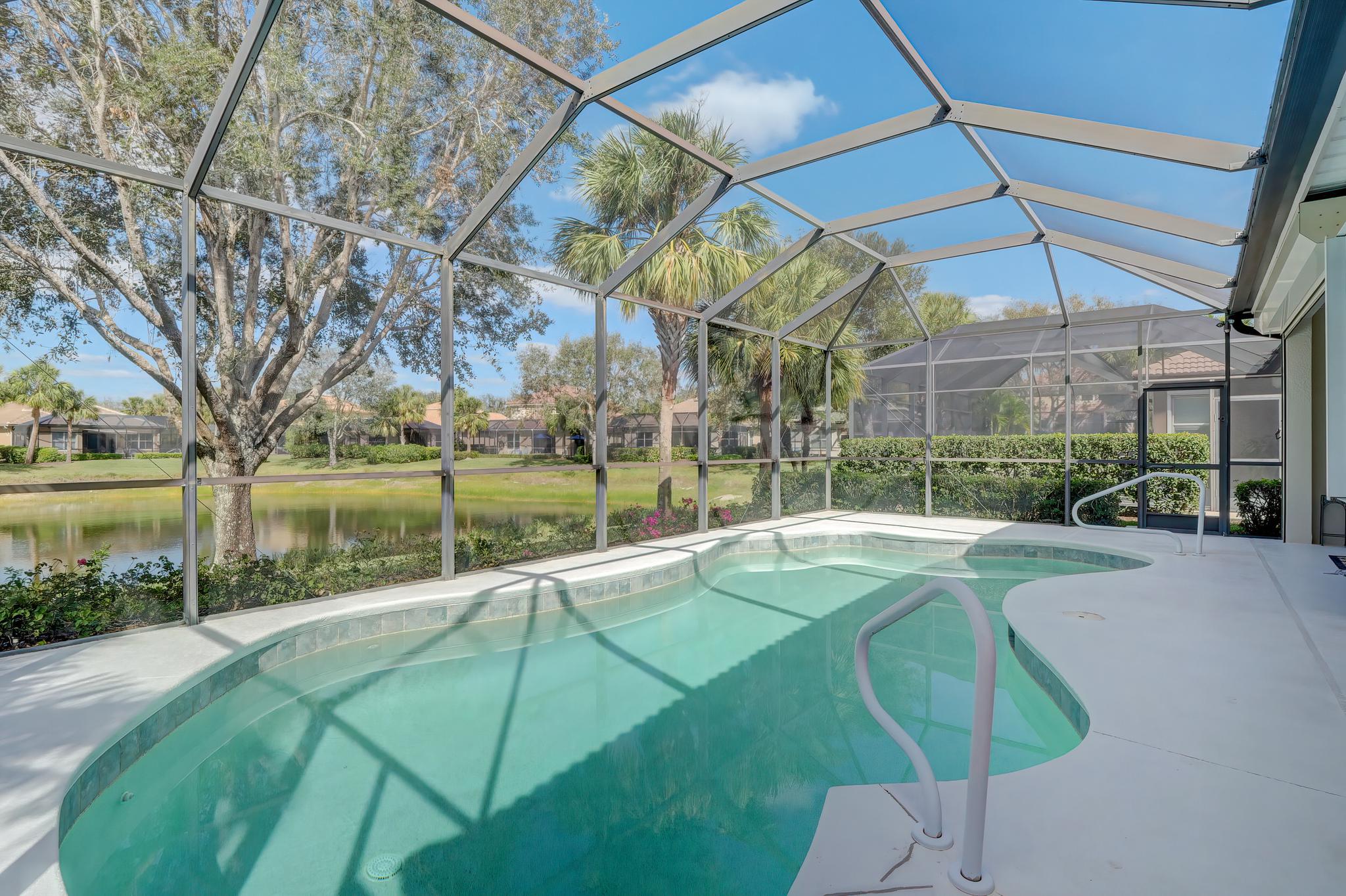 This gorgeous well cared for house offers beautiful lake views and a wonderful sense of privacy. The screened-in pool area features a large covered seating area perfect for quiet relaxation. Three large pocket sliders open up the entire living space to the outside pool area filling the interior with an abundance of natural light. Inside is a spacious eat-in kitchen with high end cabinets, hard surface counters, stainless steel appliances, a large pantry and French doors leading to the outside. The main bedroom is a luxurious retreat with an en-suite bath featuring a separate tub and shower, dual sinks, a walk-in closet with custom shelving, and private access to the pool area. Other features include tile floors laid on the diagonal in the living area, plantation shutters, accordion hurricane shutters on every window, aluminum roll down shutters in the lanai and on the front door, 2019 AC, newer hot water heater and new pool heater being installed. Hawthorne provides 24-hour security, two community pools, two spas, pickle ball, two tennis courts, two fitness rooms, Club House & community room. Enjoy walking, biking, and running throughout the community and partake in the numerous community social activities: book club, cards, games, tennis, bike groups and organized events. Close to downtown to Bonita, Riverside Park, the beaches, RSW airport and numerous malls and eateries. Don’t miss this opportunity to own a peaceful winter retreat or year round residence.