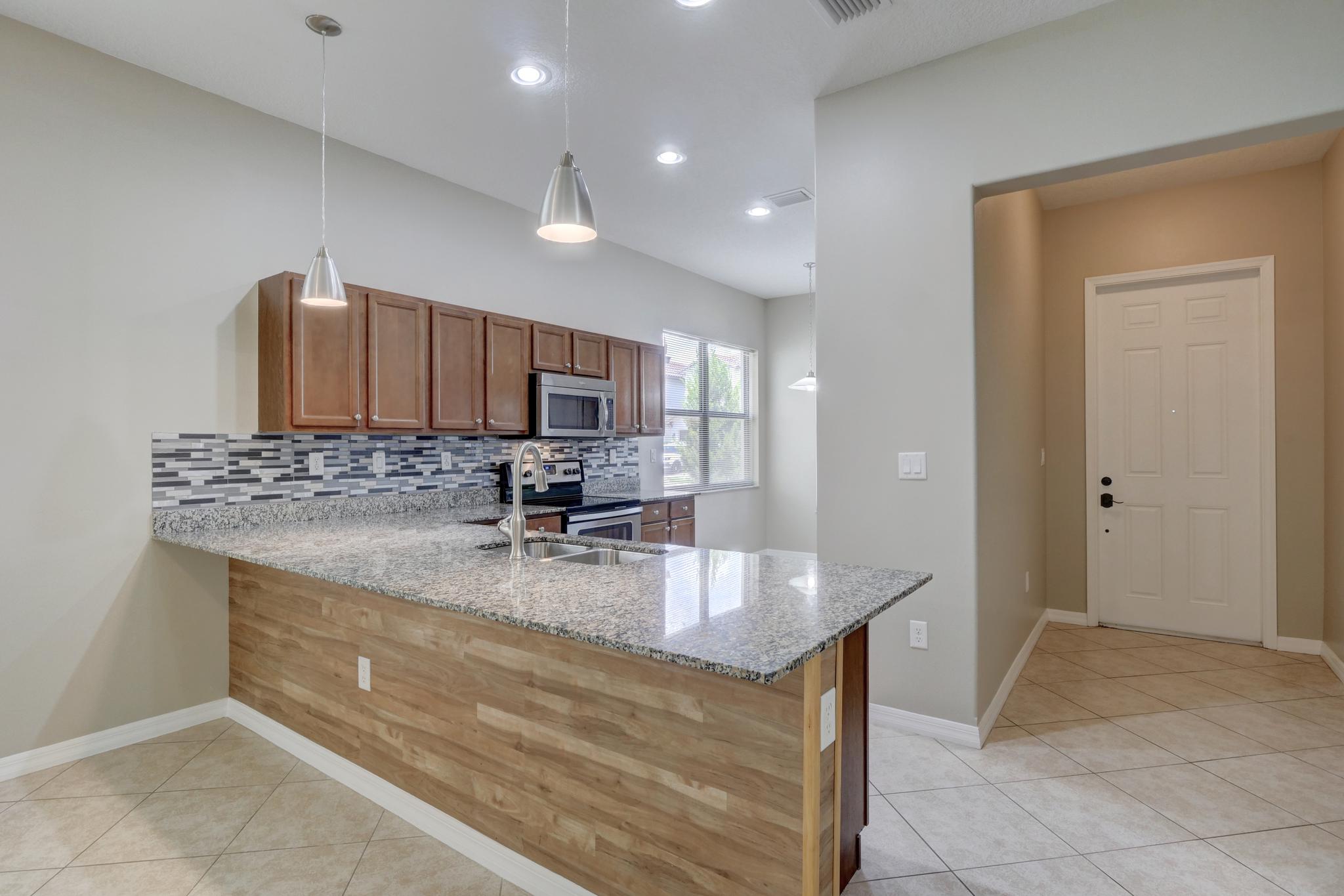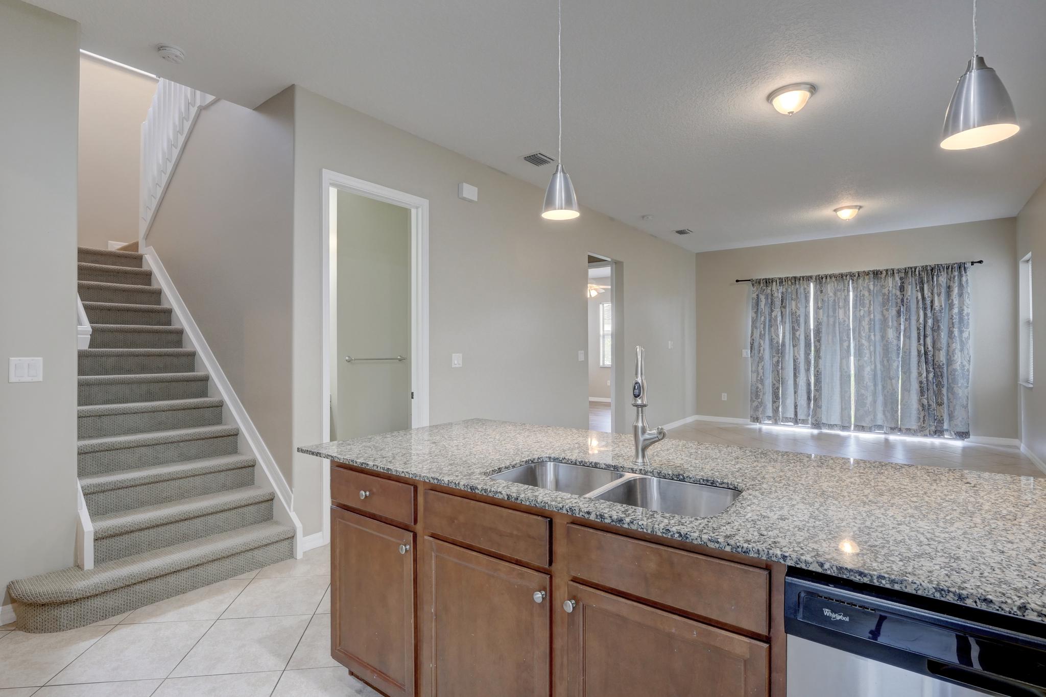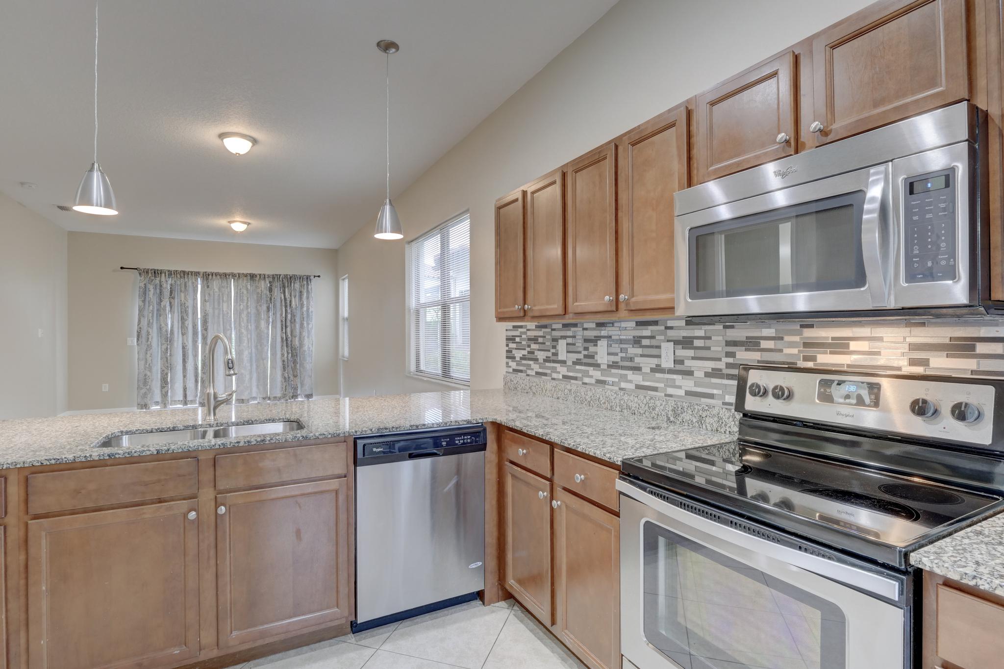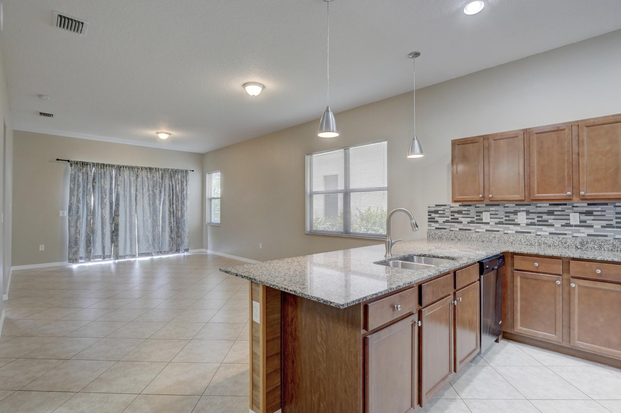Our unfurnished annual rental home is located in the Maple Ridge neighborhood of Ave Maria and it features 5 bedrooms, 3.5 bathrooms, a one car garage and a large lot. The floor plan includes a eat in kitchen, a dining room, a open concept family room, a kitchen with stainless steel appliances and granite counters. The first floor also features a half bathroom. The main bedroom suite is located on the first floor and the additional 4 bedrooms are located upstairs. Two of the upstairs bedrooms have a shared/Jack & Jill bathroom and the laundry room is conveniently located upstairs as well. This floor plan is perfect for the modern family and has enough room to spread out and for those that work from home can use one of the bedrooms as an office. Maple Ridge and Ave Maria both have wonderful onsite amenities including Clubhouses with resort style swimming pools and a water park, a dog park, children's playground, a baseball field, tennis and pickleball courts , and the National Golf Course at Ave Maria is a public golf course with memberships available.